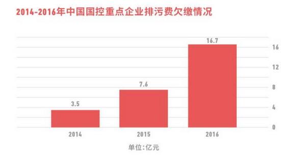 過去排污費制度的最大問題是費用拖欠。2014至2016年間,中國國家重點監控企業欠繳的排污費為3.5億元、7.6億元、16.7億元,分別占各年應繳征收排污費的比例為4%、8%和17%。2016年,無一省份繳清排污費,拖欠最多的遼寧、江蘇兩省欠費高達2.2億和1.7億元。